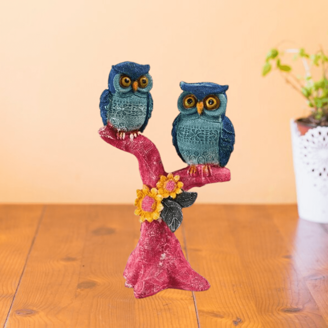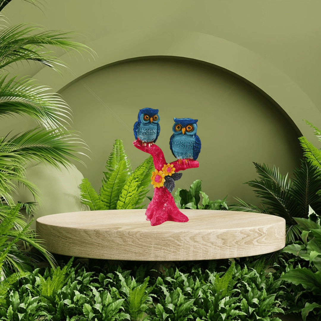 Polyresin owl showpiece with 2 owls on a tree – a charming decorative item for home or garden, symbolizing wisdom and natural beauty.