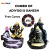 Combo Pack of 2 Backflow Incense Burners featuring “Lord Ganesh & Adiyogi Statue,” a meticulously crafted set designed to enrich your home decor with spiritual elegance. This combo, finished in sleek black, is complemented by the inclusion of 101 free incense cones, offering a prolonged and immersive sensory experience in your sacred space.