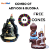 Combo Pack featuring the serene union of Lord Adiyogi and Buddha Backflow Incense Burners, accompanied by a generous offering of 51 complimentary incense cones. Elevate your meditation space and invoke a sense of tranquility with this harmonious blend of two iconic spiritual figures.